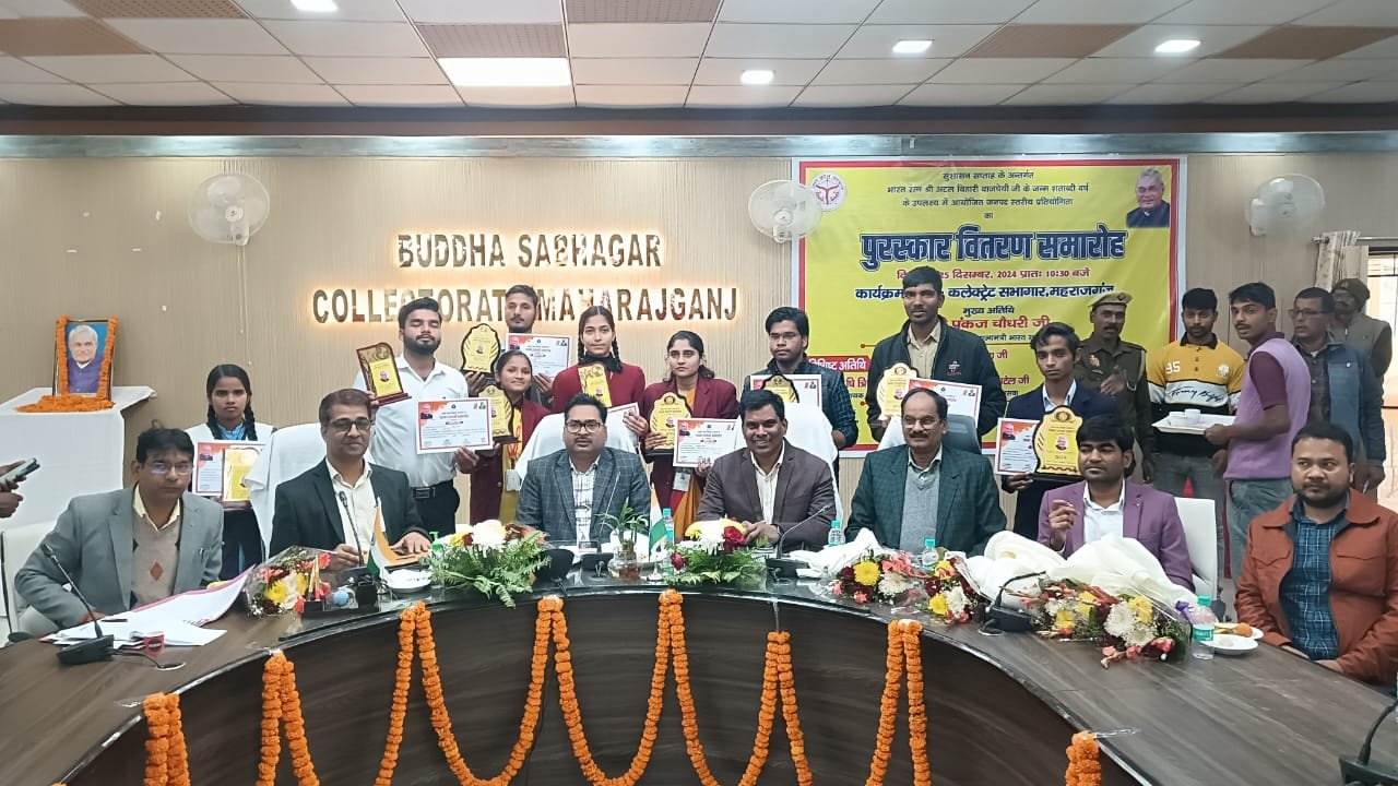 महराजगंज। 25 दिसम्बर 2024, भारत रत्न एवं पूर्व प्रधानमंत्री अटल बिहारी वाजपेयी के 100 वीं जन्म शताब्दी कलेक्ट्रेट सभागार में उप जिलाधिकारी की अध्यक्षता में गोष्ठी का आयोजन किया गया। जन्मदिवस समारोह के अवसर पर सुशासन दिवस के रूप में बनाये जाने हेतु विद्यालयों में 18 दिसम्बर से 25 दिसम्बर 2024 तक एक सप्ताह का आयोजन किया गया। जिसमें विद्यालयों के द्वारा माध्यमिक एवं उच्च माध्यमिक के शिक्षा के बच्चों में अटल जी एवं सुशासन विषय पर निबन्ध लेखन,भाषण,एकल काव्य पाठ में विद्यार्थियों द्वारा प्रतियोगिता में प्रतिभागियों ने भाग लिया। प्रतियोगिता में प्रथम स्तर पर विद्यालय द्वितीय स्तर तहसील एवं जिला स्तर पर प्रतियोगिता कराई गई। जिसमें भाषण व एकल काव्य पाठ प्रतियोगिता में प्रथम स्थान पर दस हजार द्वितीय स्थान पर पांच हजार तथा तृतीय स्थान पर दो हजार पांच सौ का पुरस्कार दिया जाना था । निबन्ध प्रतियोगिता में प्रथम स्थान हेतु पांच हजार, द्वितीय स्थान पर तीन हजार तथा तृतीय स्थान हेतु दो हजार के साथ प्रमाण पत्र व स्मृति चिन्ह भेंट कर सम्मानित किया गया। इस प्रकार अवधेश डा0 भीम राव अम्बेडकर महाविद्यालय महराजगंज द्वारा प्रथम स्थान प्राप्त करने हेतु रू0दस हजार , प्रशस्ति पत्र एवं सृष्टि चिन्ह भेंट कर सम्मानित किया गया। द्वितीय स्तर प्राप्त करने वाले आदर्श पाण्डेय को पांच हजार तथा अंकेश गुप्ता अवैधनाथ महाविद्यालय चौक बाजार को दो हजार पांच सौ , इसी तरह एकल काव्य पाठ में प्रथम स्थान प्राप्त करने में ज्योति यादव सोनपति देवी महाविद्यालय को दस हजार, द्वितीय स्थान हेतु सत्यप्रकाश व्दिवेदी जवाहरलाल नेहरु पी जी कालेज को पांच हजार तथा वसुधा पाण्डेय आर0पी0आई0सी0 निचलौल को ढाई हजार तथा निबन्ध प्रतियोगिता में शिवम चौरसिया प्रथम स्थान सेठ आनंद राम जयपुरिया इण्टर कालेज को पांच हजार,द्वितीय स्थान पर कशिश गौड़ आर पी इण्टर कालेज को तीन हजार तथा मेनका राजकीय इण्टर कालेज महराजगंज द्वारा तृतीय स्थान प्राप्त करने पर दो हजार का डेमो चेक तथा प्रशस्ति पत्र व स्मृति चिन्ह भेंट सम्मानित किया गया। इस अवसर पर उप जिलाधिकारी सदर रमेश कुमार यादव द्वारा पूर्व प्रधानमंत्री अटल बिहारी वाजपेई सामाजिक, आर्थिक, राजनीतिक और व्यक्तित्व पर प्रकाश डालते हुए बच्चों को उनके विचारों को जानने हेतु कहा।