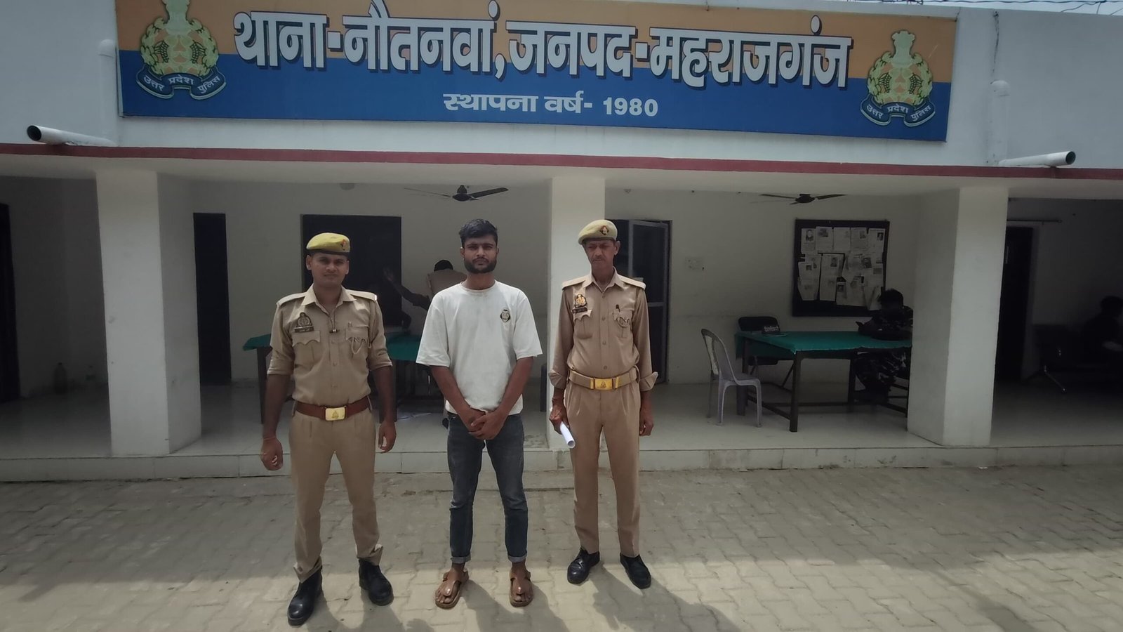 नौतनवा महाराजगंज। रविवार की रात हिंदू युवा वाहिनी के पूर्व जिलाध्यक्ष नरसिंह पाण्डेय के सीमेंट की दुकान में हुई चोरी की घटना को नौतनवा पुलिस ने 24 घंटे के अंदर पर्दाफाश कर दिया। सोमवार से ही नौतनवा पुलिस सीसी टीवी फुटेज के आधार पर चोरों की कुंडली खंगालना शुरू कर दिया था फुटेज के आधार पर नौतनवा पुलिस ने शातिर चोर हिमांशु दुबे पुत्र अष्टभुजा दुबे निवासी सरोजिनी नगर वार्ड नंबर 15 नगर पालिका नौतनवा को डंडा हेड पुल के पास से गिरफ्तार कर चोरी का सामान बरामद कर घटना का पर्दाफाश कर दिया और शातिर चोर हिमांशु दुबे को जेल भेज दिया है। उक्त आशय की जानकारी नौतनवा पुलिस ने एक प्रेस विज्ञप्ति जारी कर दी। गिरफ्तार करने वाली पुलिस टीम में नायब दरोगा निशांत कांस्टेबल मनीष यादव हृदेश यादव शामिल है।