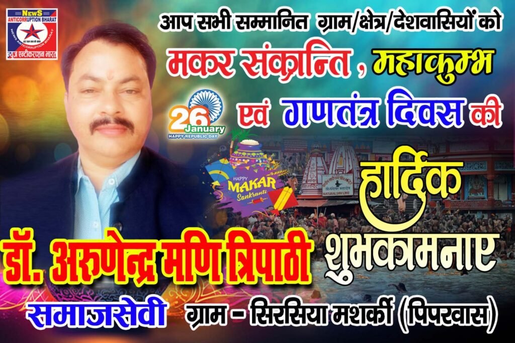 *आप सभी सम्मानित साथियों को मकर संक्रांति, महाकुंभपर्व, एवं गणतंत्रदिवस कि हार्दिक-हार्दिक शुभकामनाऐं------------डॉ अरुणेंद्र मणि त्रिपाठी-समाजसेवी-सिरसिया मसरकी-पिपरवास-नौतनवा,महाराजगंज*