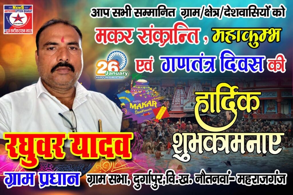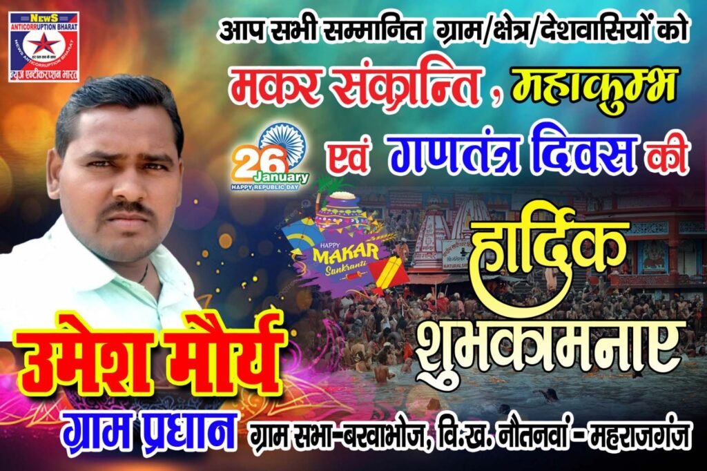 *आप सभी सम्मानित साथियों को मकर संक्रांति, महाकुंभपर्व, एवं गणतंत्रदिवस कि हार्दिक-हार्दिक शुभकामनाऐं------------उमेश मौर्य-प्रधान-ग्रामसभा वरवांभोज नौतनवा,महाराजगंज*