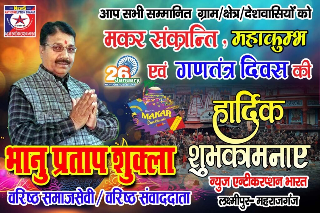 *आप सभी सम्मानित साथियों को मकर संक्रांति, महाकुंभपर्व, एवं गणतंत्रदिवस कि हार्दिक-हार्दिक शुभकामनाऐं------------भानुप्रताप शुक्ल/वरिष्ठ समाजसेवी-लक्ष्मीपुर, महाराजगंज*