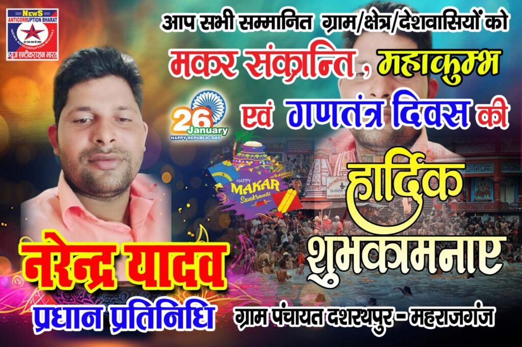 *आप सभी सम्मानित साथियों को मकर संक्रांति महाकुंभ पर्व एवं 26 जनवरी की हार्दिक-हार्दिक शुभकामनाएं-------------नरेंद्र यादव-प्रधान प्रतिनिधि ग्राम सभा दशरथपुर...