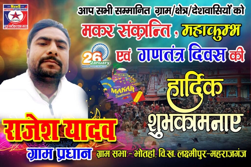 *आप सभी सम्मानित साथियों को मकर संक्रांति महाकुंभ पर्व एवं 26 जनवरी की हार्दिक-हार्दिक शुभकामनाएं-------------राजेश यादव-प्रधान-ग्रामसभा भोथहां विकासखंड लक्ष्मीपुर महारजगंज*